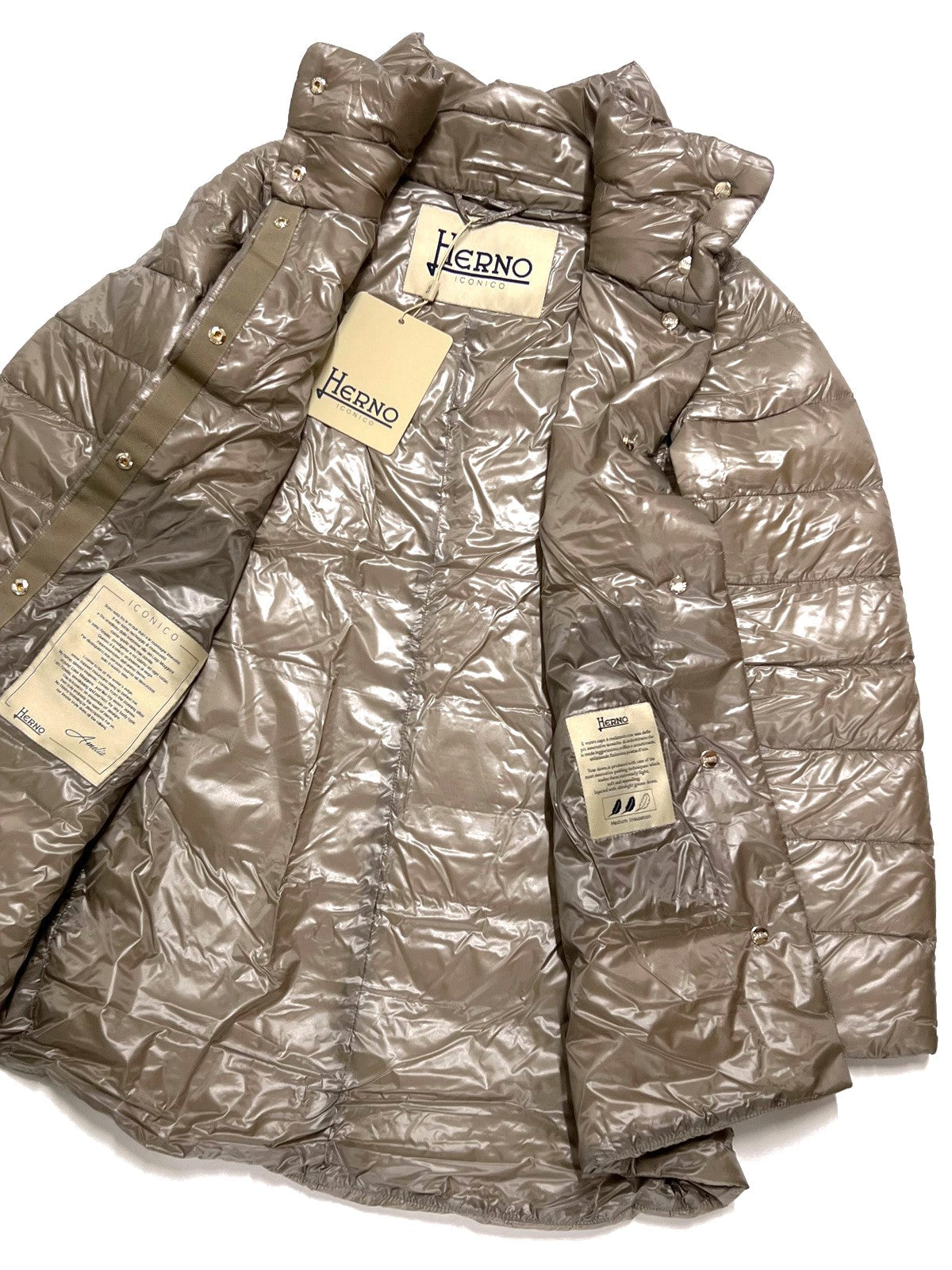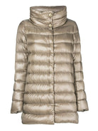 The Amelia Nylon Ultra Light Jacket in Tortora offers expert design for warmth and style. Its high neck provides added protection against chilly winds, while the A-line silhouette creates a flattering shape. Featuring front button fastening, this jacket combines easy wearability with refined structure. Lightweight yet insulating, it keeps you comfortable without compromising on elegance, making it perfect for chilly days.