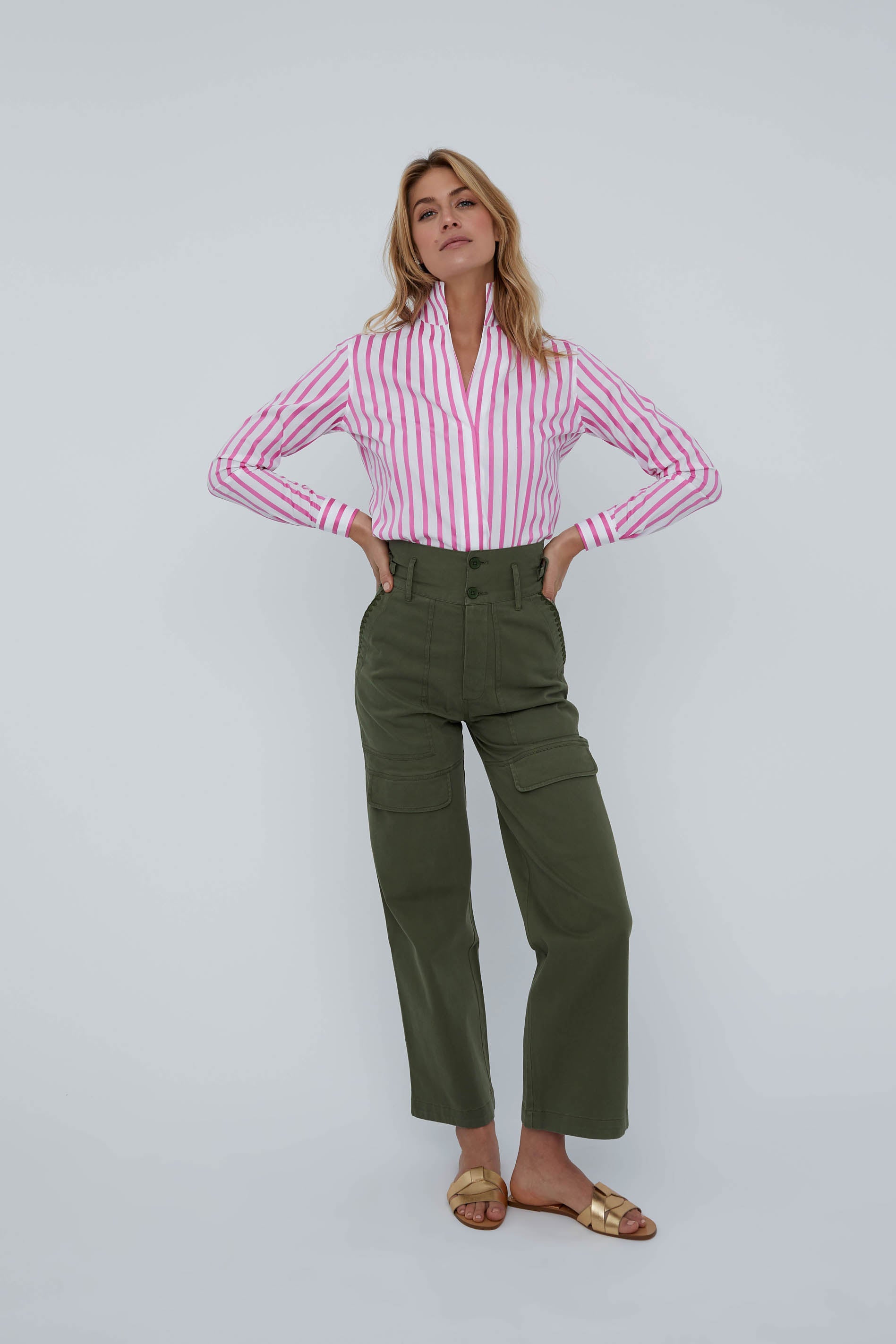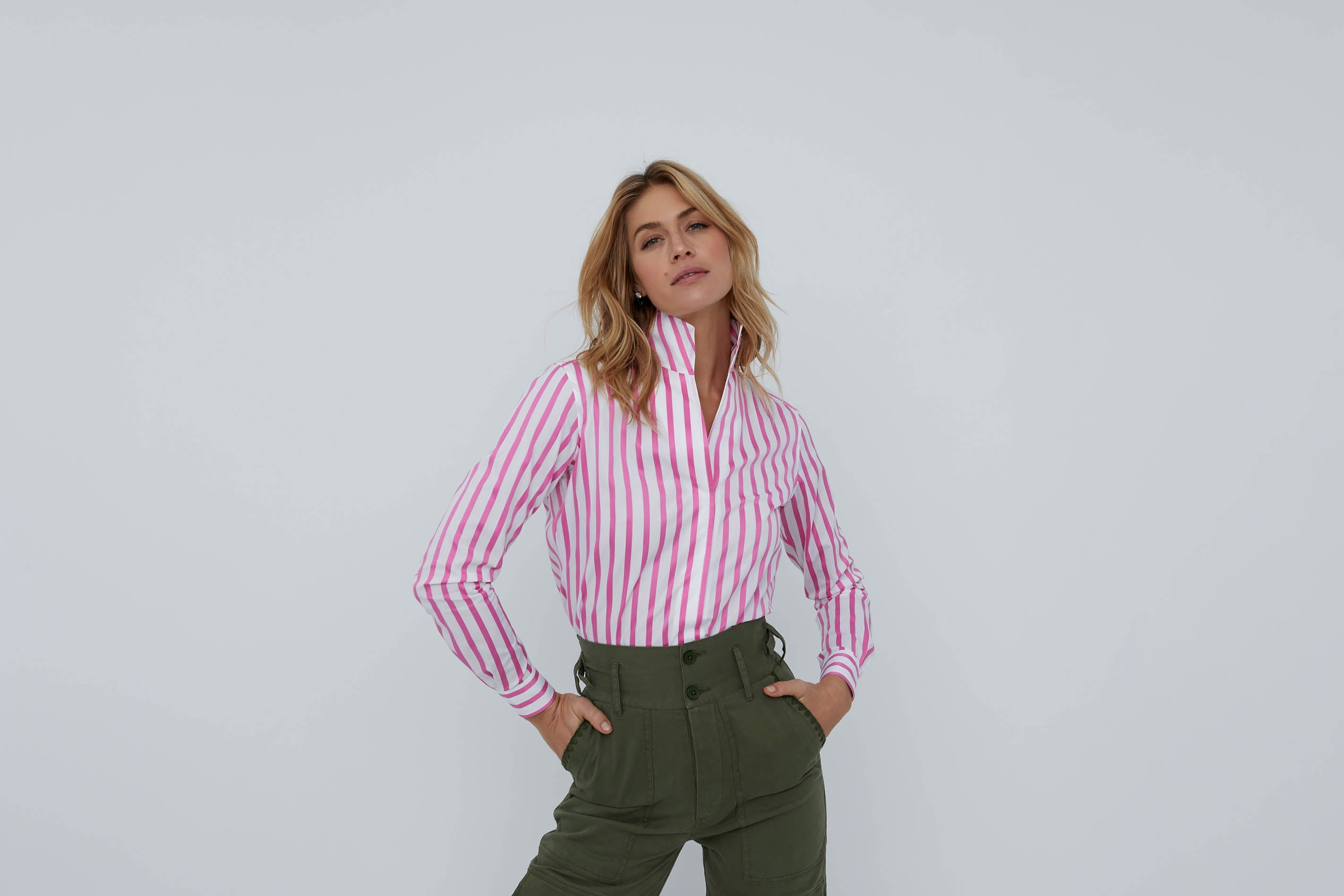 Make a splash and surprise everyone with Sarah’s perfectly pink-striped Italian cotton. Fun, flirty, and oh-so feminine, this is the perfect choice when you want to go sweet. Be assured it glams up effortlessly paired with all your nighttime faves. Make your dreamboat fall hard for you (and if that happens to be your S/O, even better.) Someone’s got to steal the scene. Why not you?