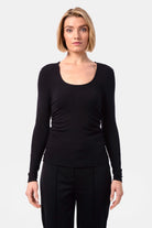 Feminine all the way. This perfectly rounded neck tee has rouching on the side for the most flattering fit.