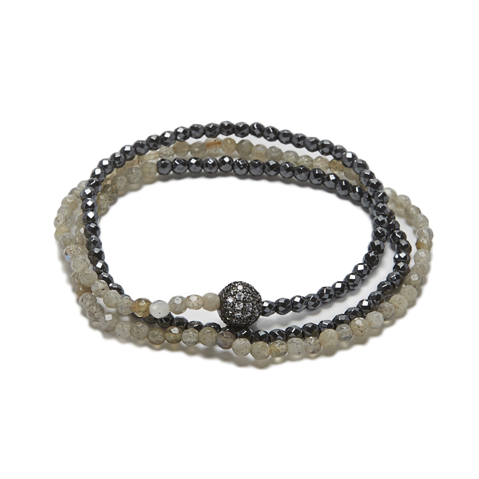 hematite- labradorite oxidized silver fill ball with cz crystals