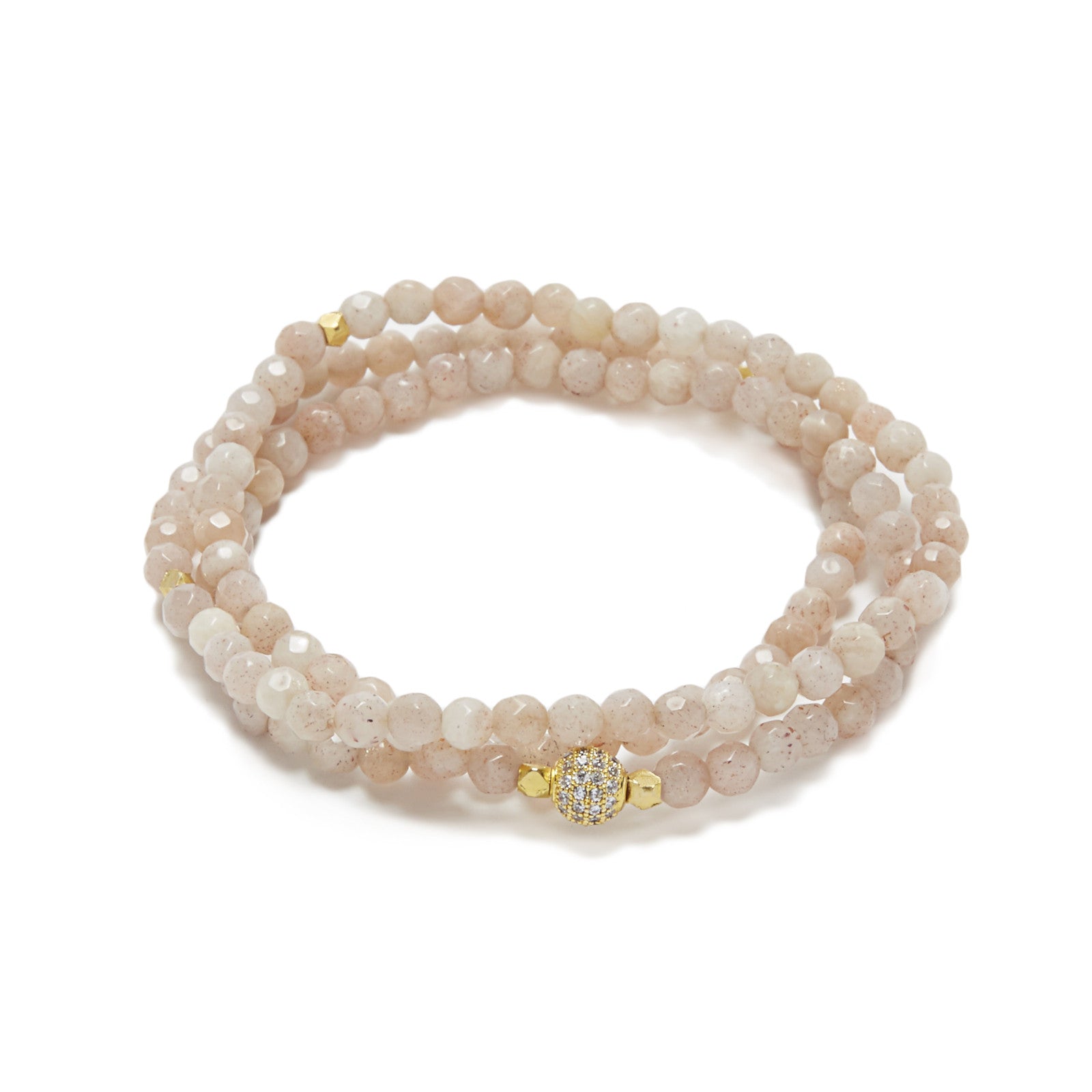 This dainty bracelet wraps three times around your wrist. Strung on a strong stretchy cord.