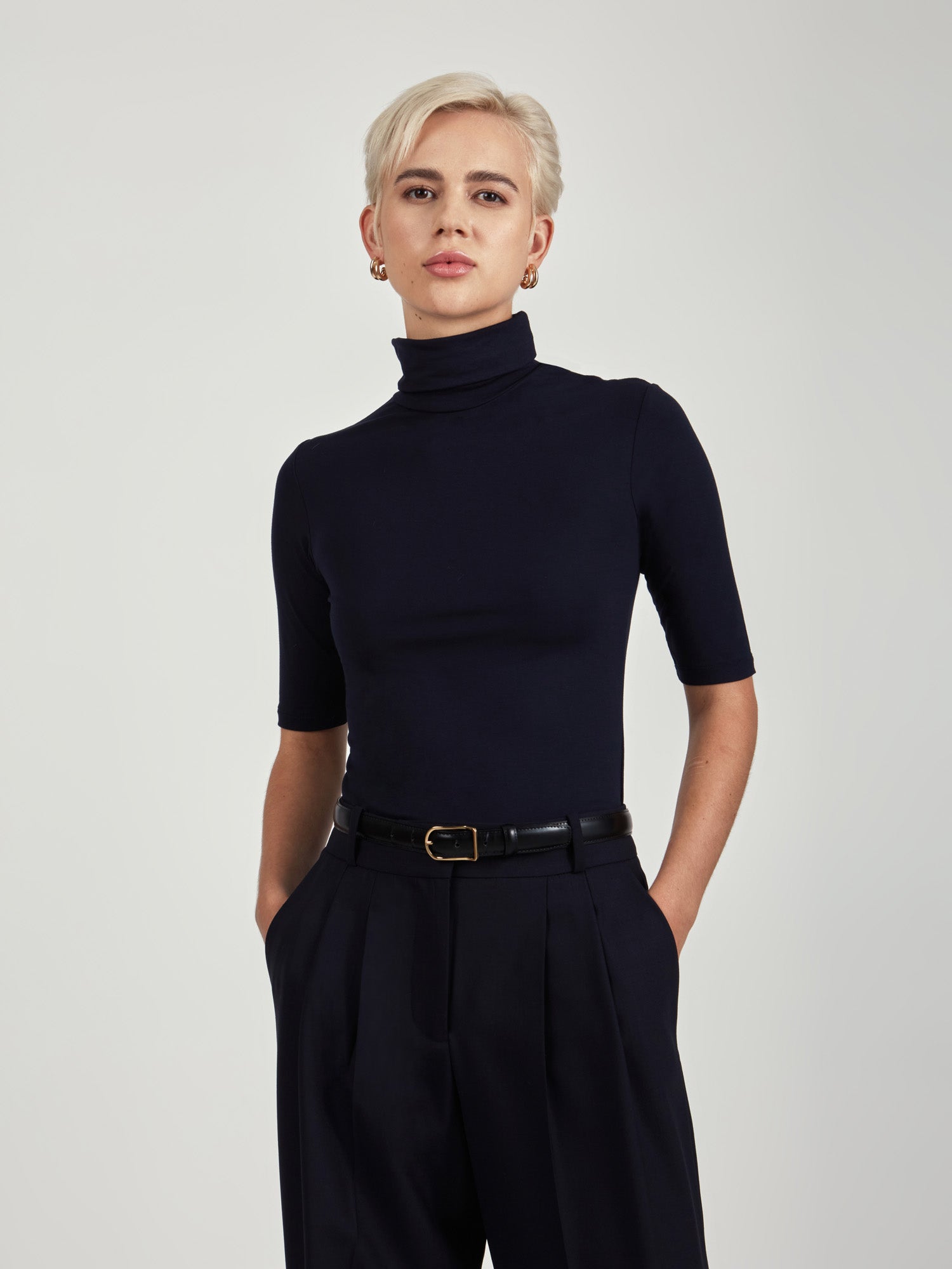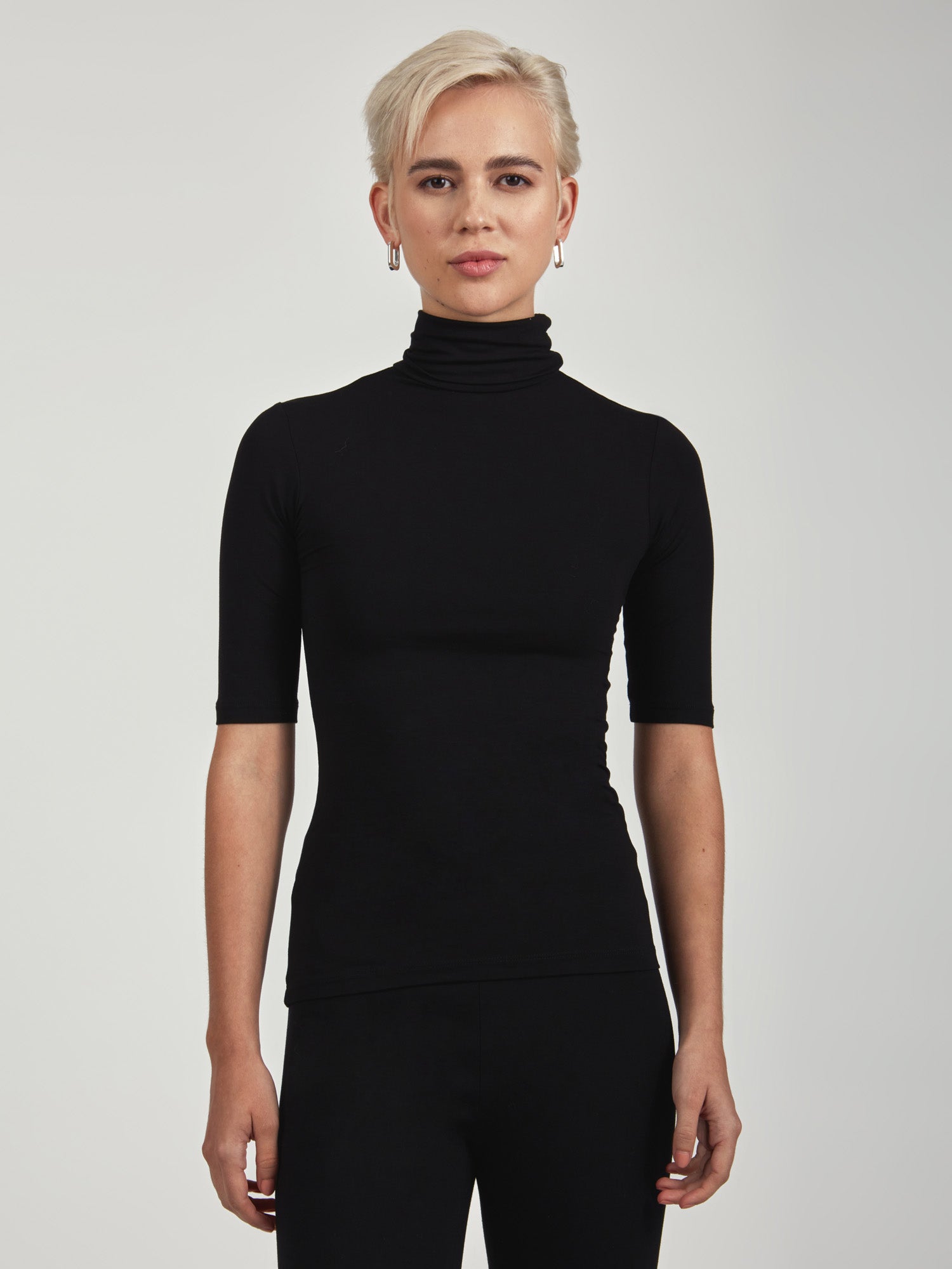Short sleeve turtleneck t-shirt in Viscose Jersey, fitted