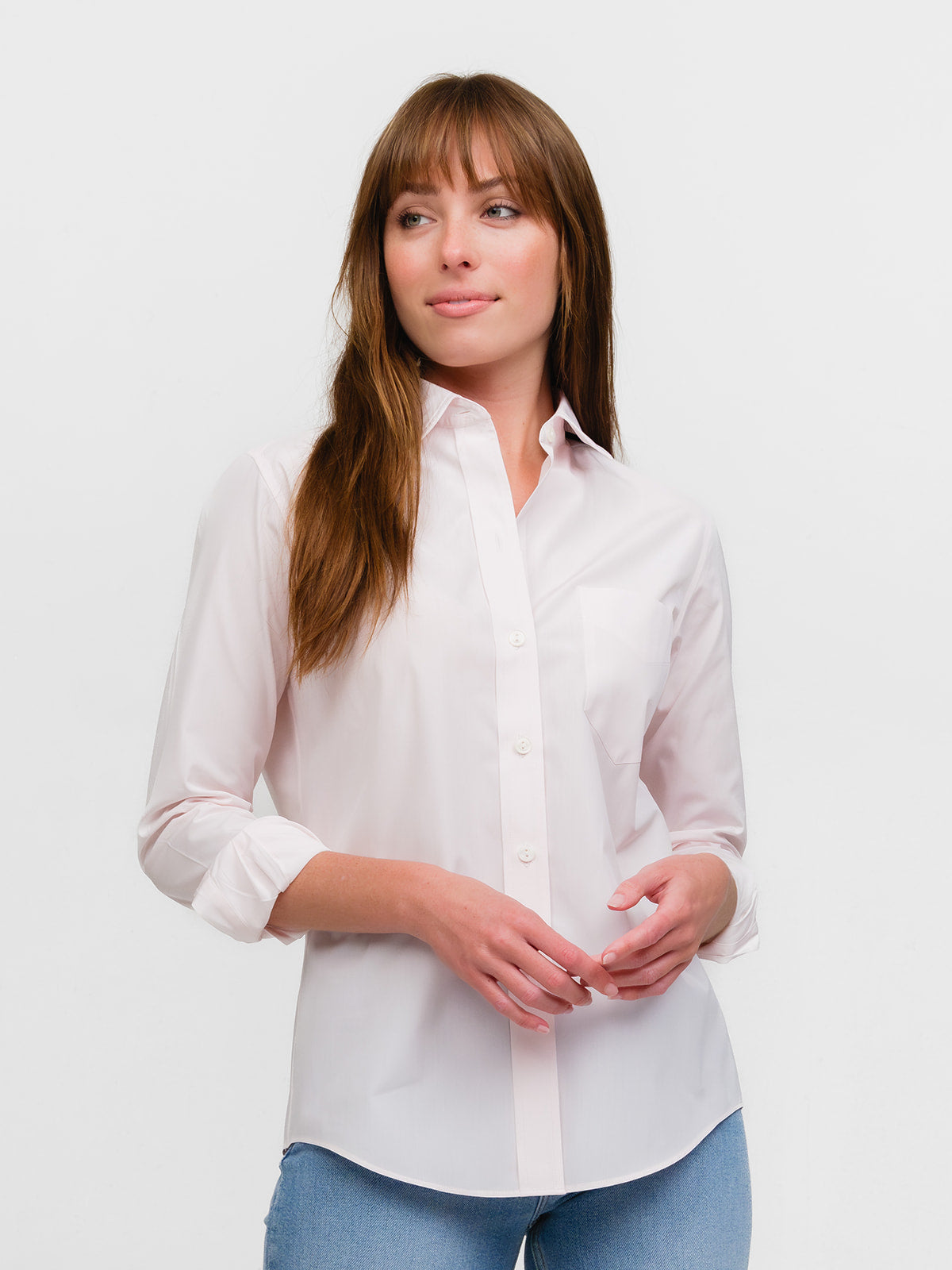 The Weekend Shirt embodies the carefree spirit of Saturdays and Sundays that you will enjoy and wear 7 days a week. Dress it up or down with your favorite jeans, edgy leather pants or a chic pencil skirt—it’s your go-anywhere, do-anything shirt. Sartorially influenced by menswear, this classic sports a two-piece collar, front pocket, and beveled placket and cuff buttons.