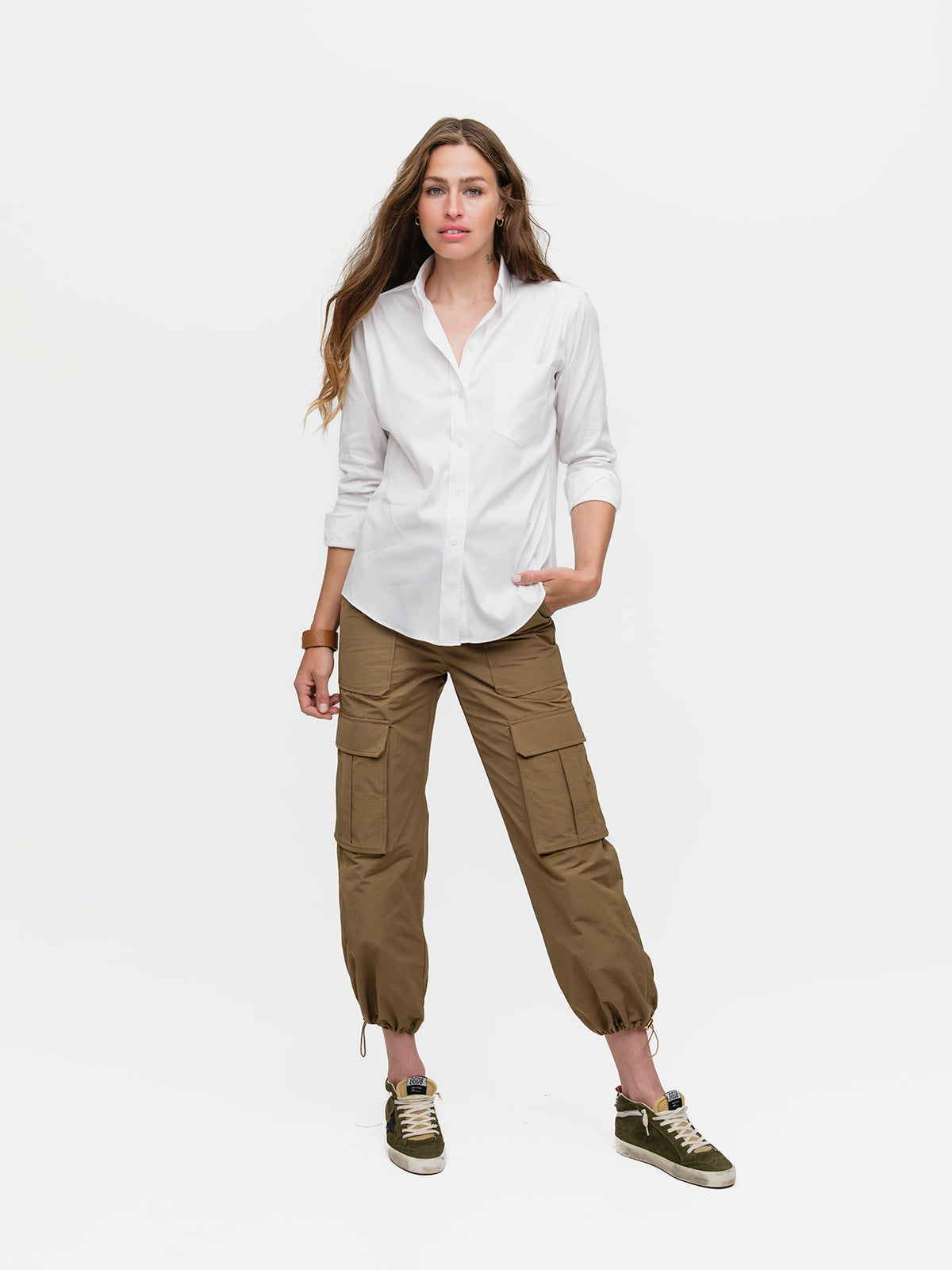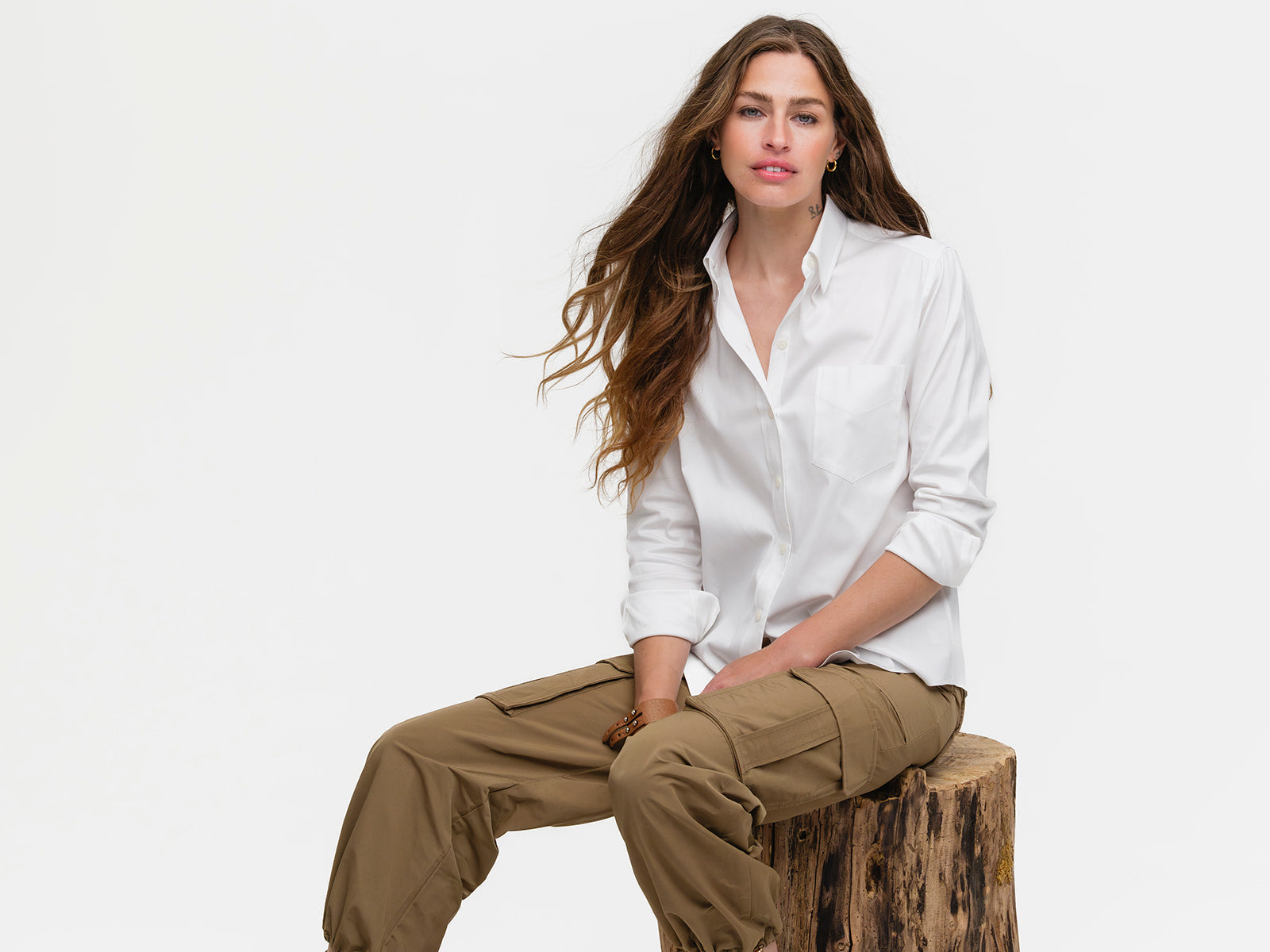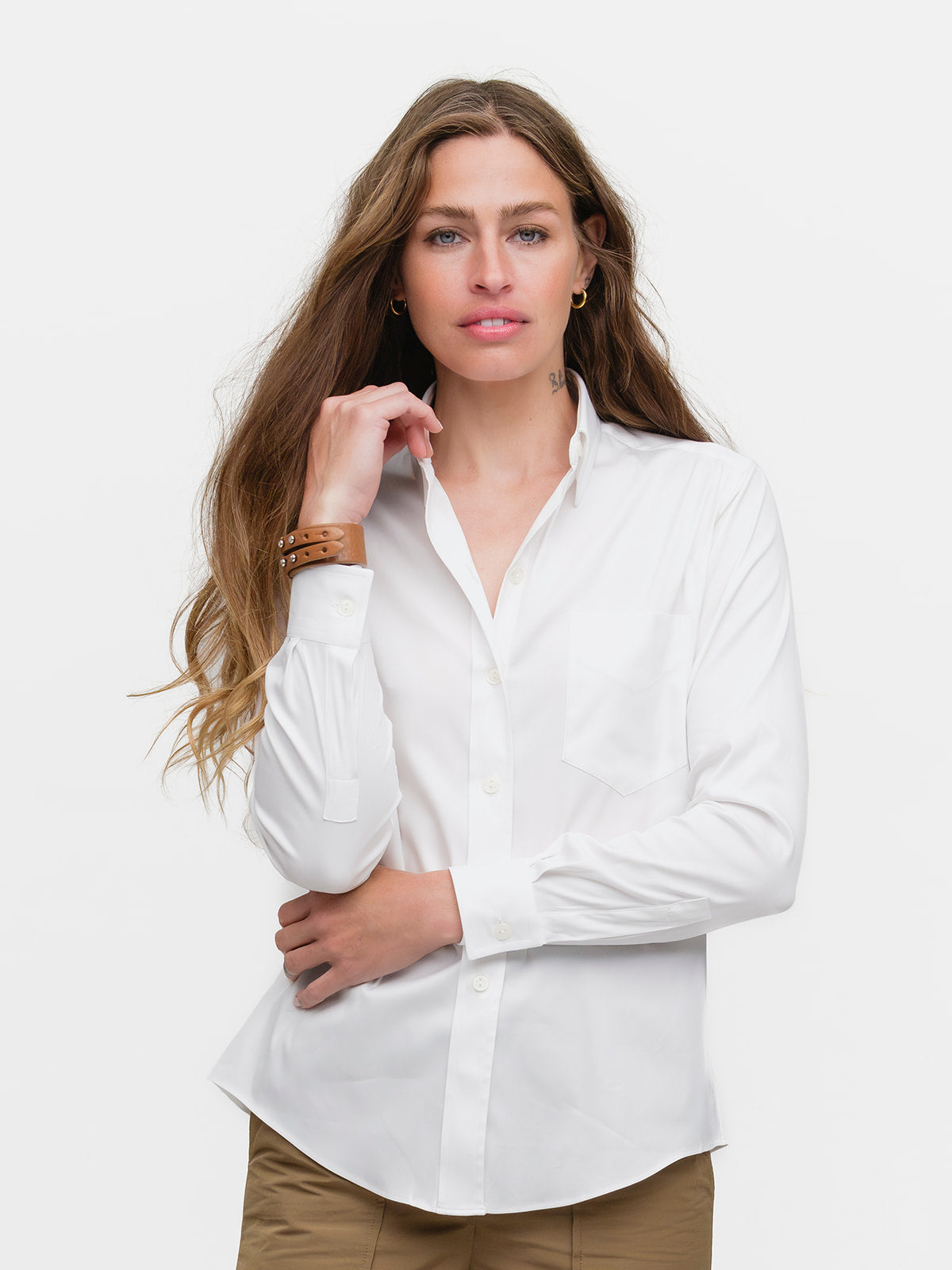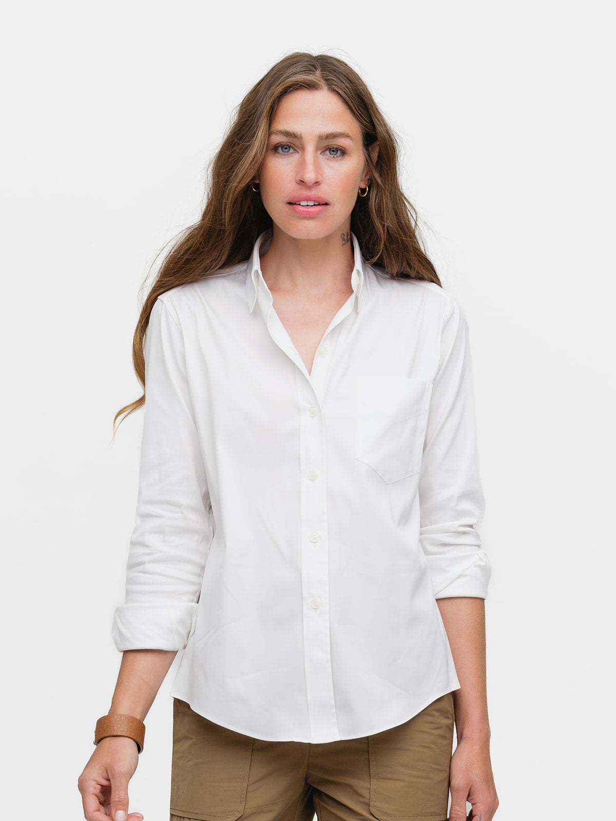 Our menswear inspired Weekend Shirt in a white stretch broadcloth.
