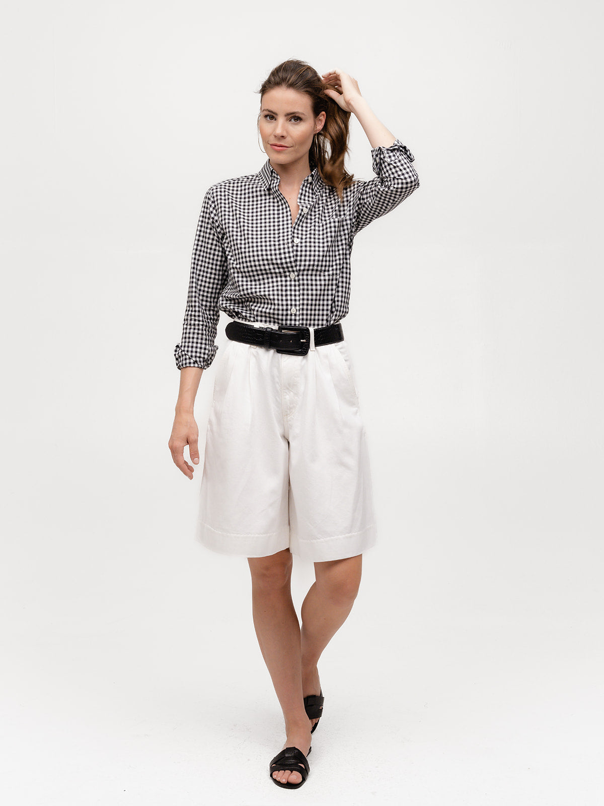 The Weekend Shirt embodies the carefree spirit of Saturdays and Sundays that you will enjoy and wear 7 days a week. Dress it up or down with your favorite jeans, edgy leather pants or a chic pencil skirt—it’s your go-anywhere, do-anything shirt. Sartorially influenced by menswear, this classic sports a two-piece collar, front pocket, and beveled placket and cuff buttons.