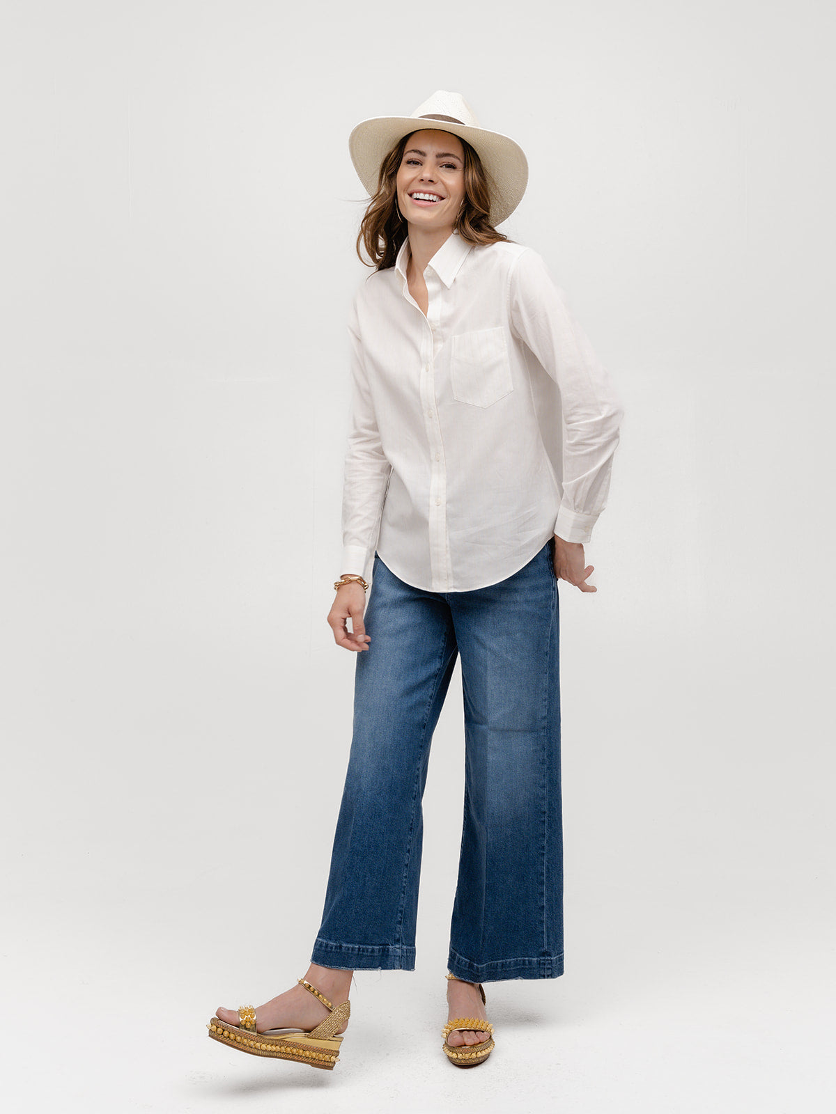 The Weekend Shirt embodies the carefree spirit of Saturdays and Sundays that you will enjoy and wear 7 days a week. Dress it up or down with your favorite jeans, edgy leather pants or a chic pencil skirt—it’s your go-anywhere, do-anything shirt. Sartorially influenced by menswear, this classic sports a two-piece collar, front pocket, and beveled placket and cuff buttons.