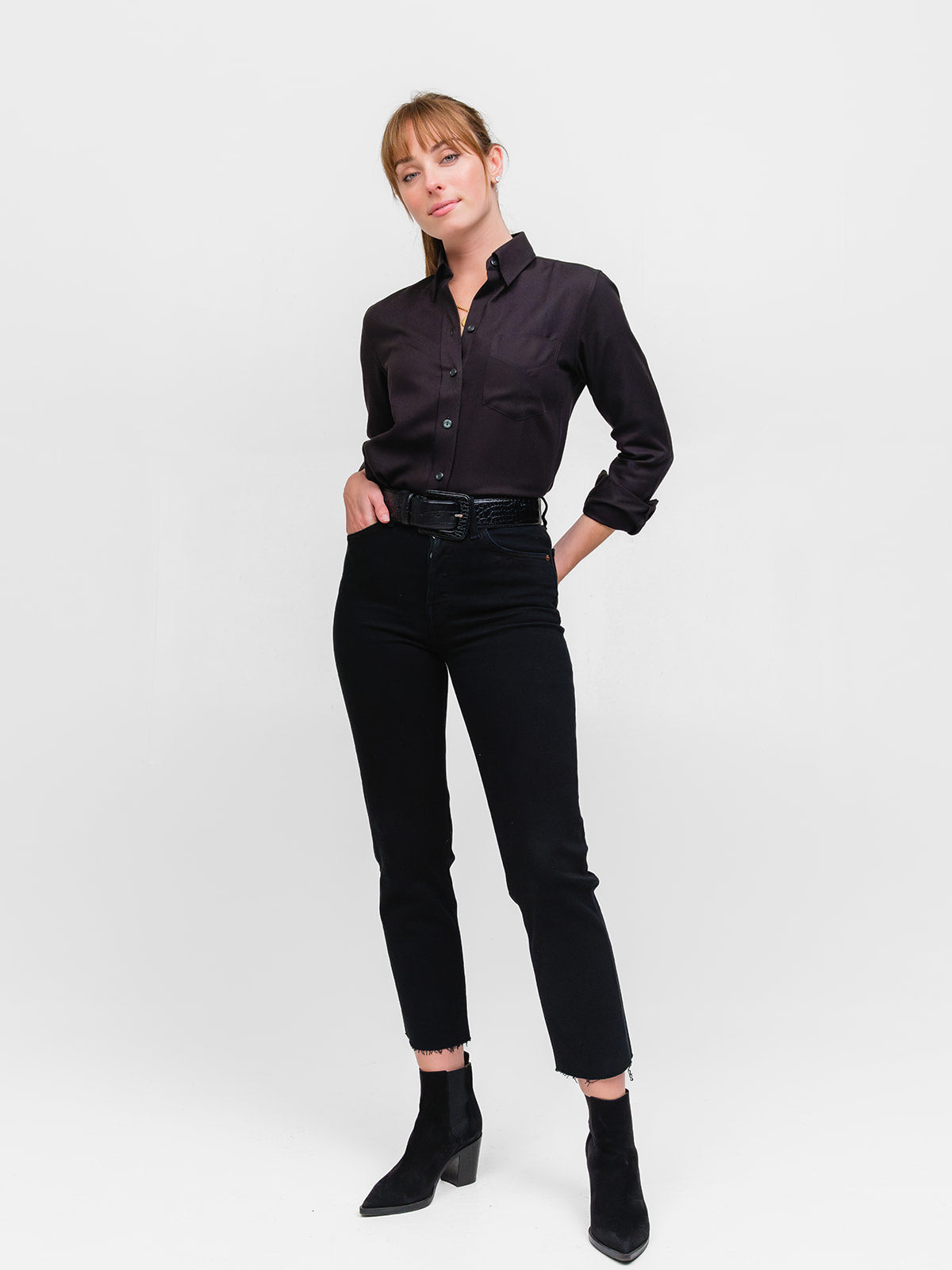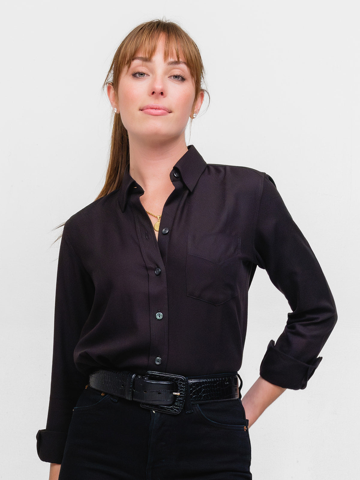 There are two things Sarah knows a woman can never have too much of: handcrafted, expertly constructed shirts cut from luxurious Italian fabrics — and the adventures, hijinks and escapades in which to wear them. Whether it’s spirited nights out with the girls, or slaying a business deal, this luxurious, to-die-for fabric is your magical shield. Once you’re wrapped in the spellbinding cloak of Sarah’s sumptuous black cotton & cashmere, anything is possible.