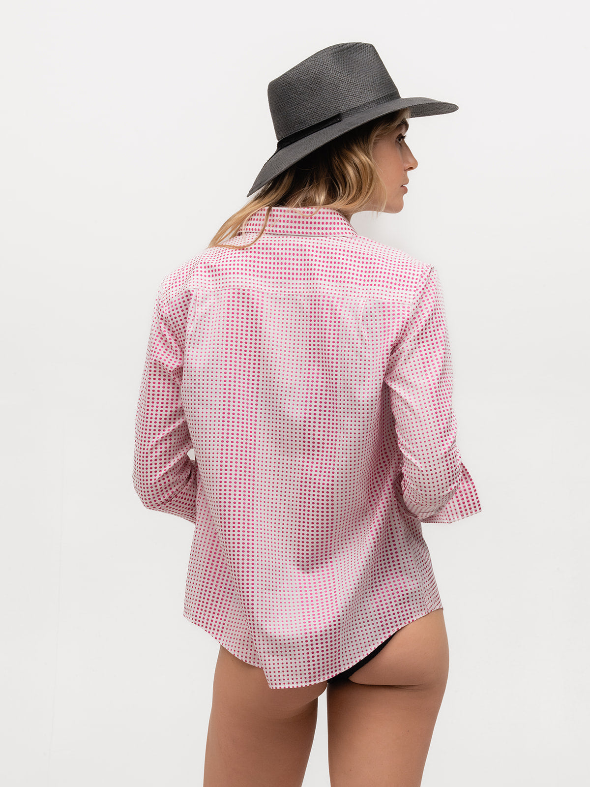 Why be a wallflower when you can be the life of the party? Dress to impress this Spring with our hot pink polka dot perfection. This cotton polka dot dobby fabric is bright, bold, and bubbly, the very definition of personal style. Let the dots dance as you strut through the season, turning heads and making a sassy splash wherever you go. Because darling, you're not just wearing a shirt – you're wearing confidence with a pop of pink sophistication.