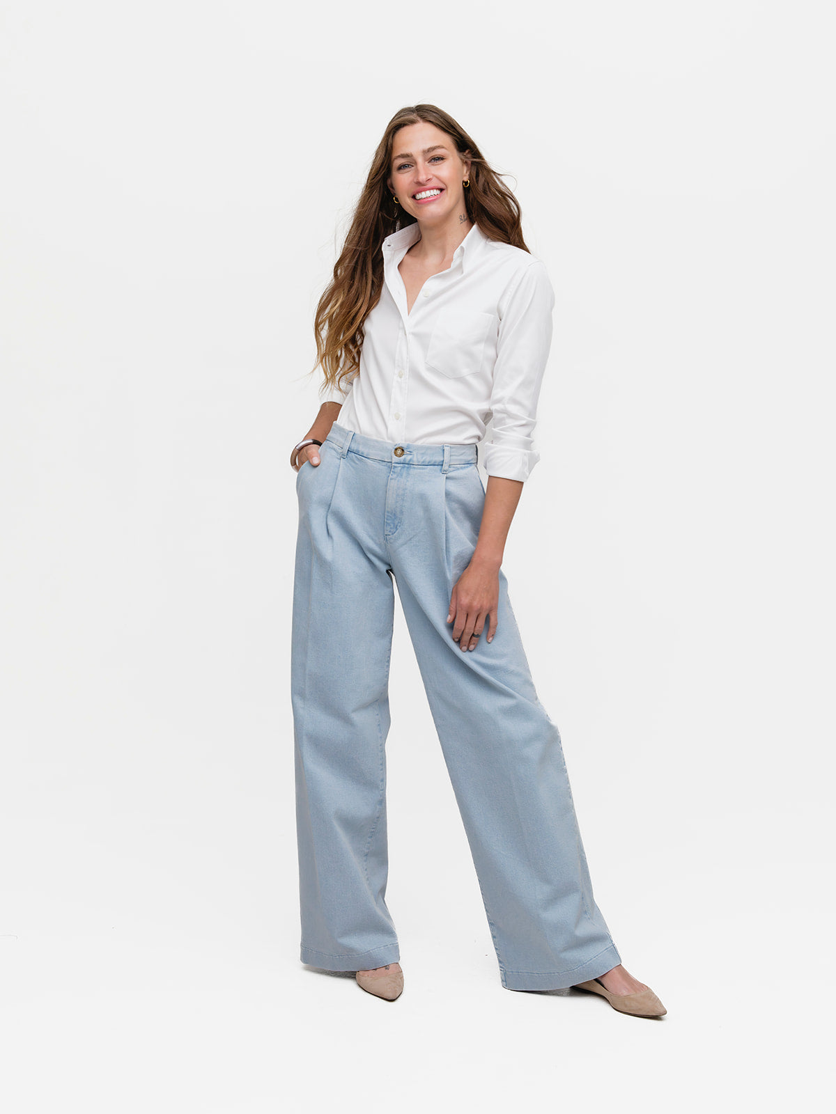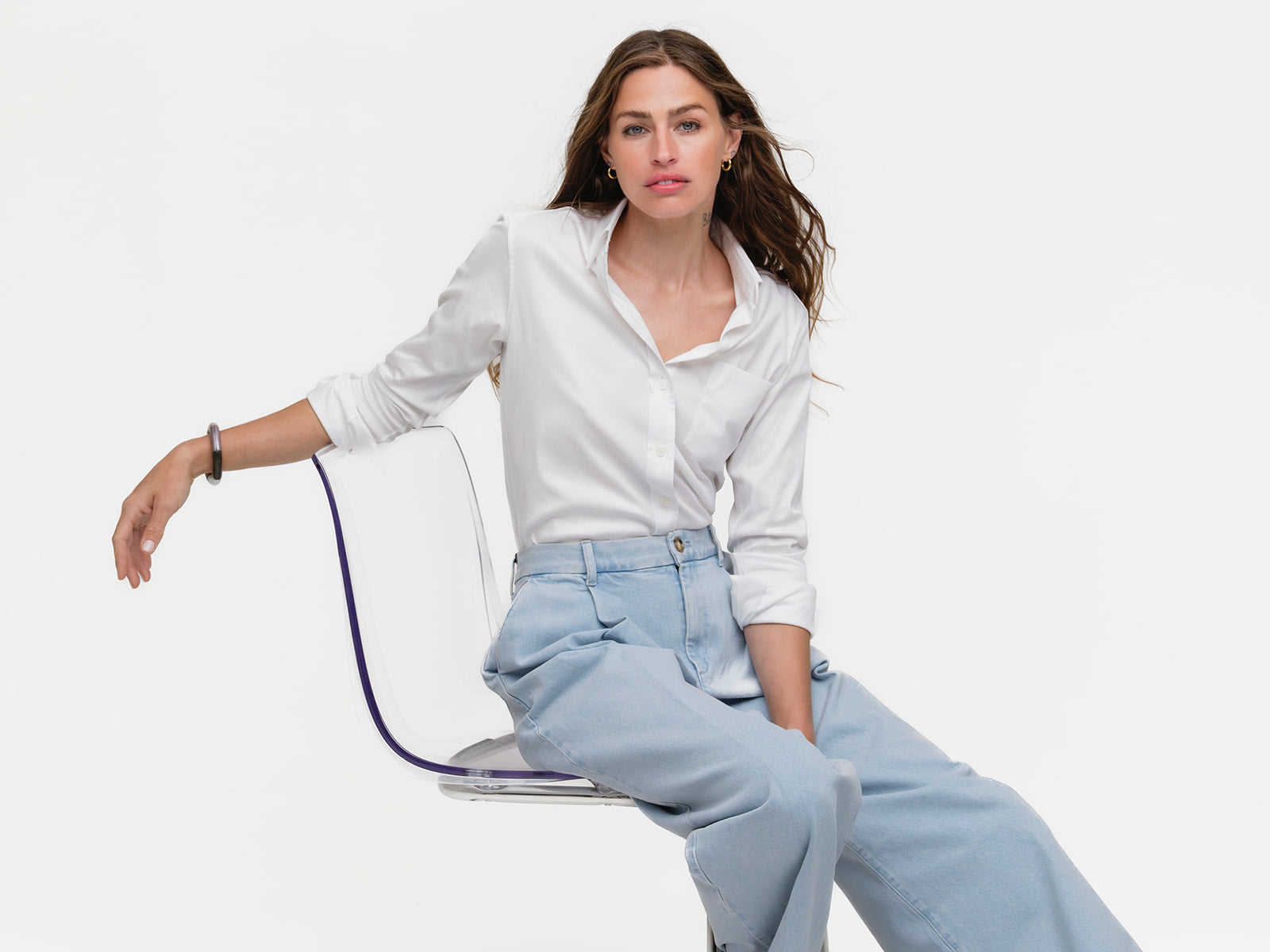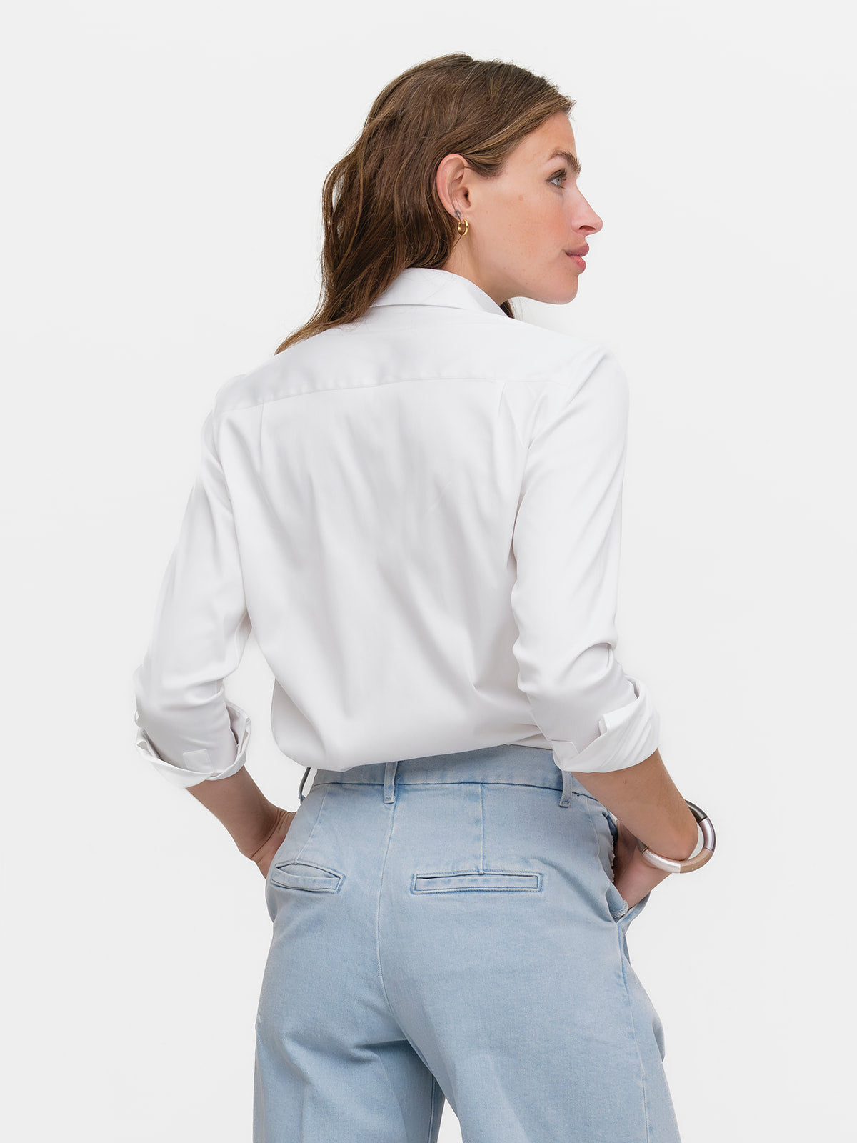 Our menswear inspired Weekend Shirt in an alluring white stretch twill.