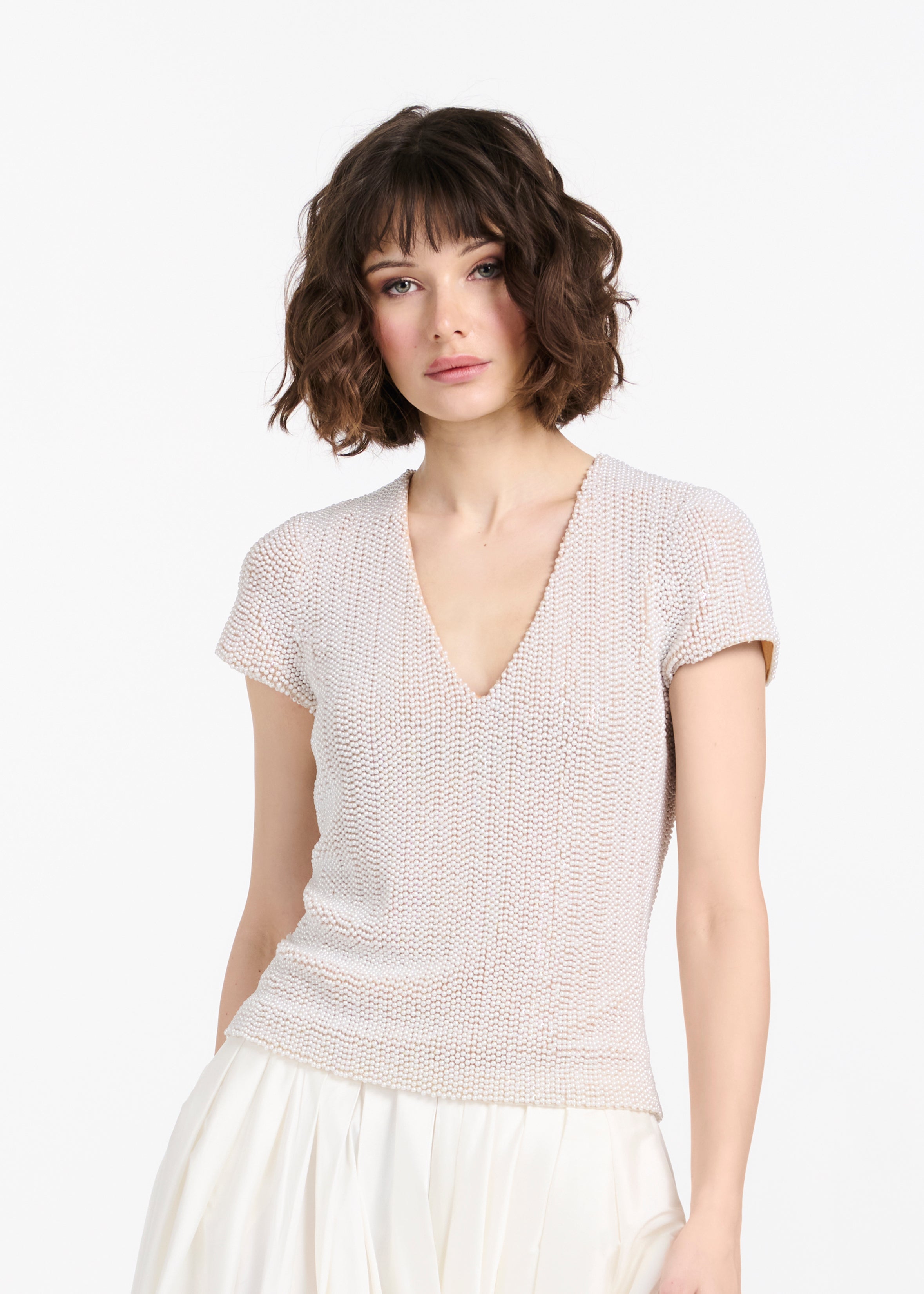 CRYSTAL BUTTON ELBOW SLEEVE POLO